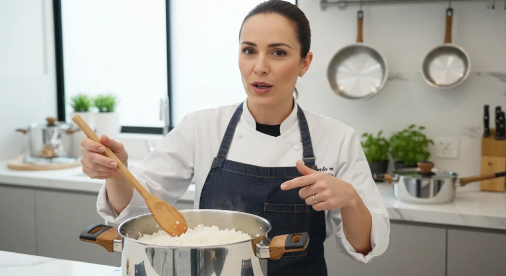 Colheres de silicone ou madeira são ideais para mexer os grãos sem danificar o revestimento. Tampas transparentes e cabos firmes também aumentam a praticidade durante o preparo.